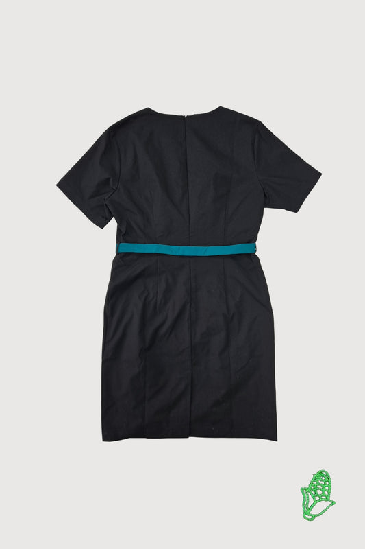 Vela Dhi/ Vela be Female Short Sleeve Asymmetric V Neck Dress with Detachable Printed Panel WDS0013