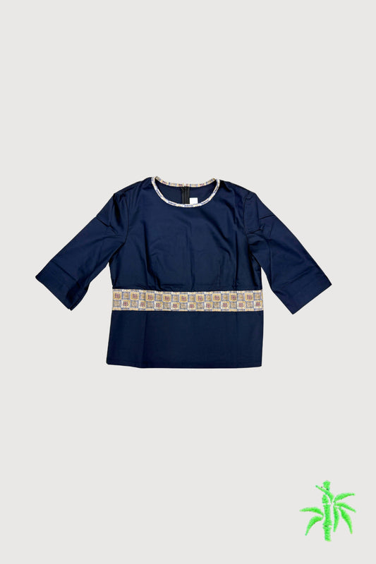Female Quarter Sleeve Top with Pattered Neck and Waist Trim WST0029