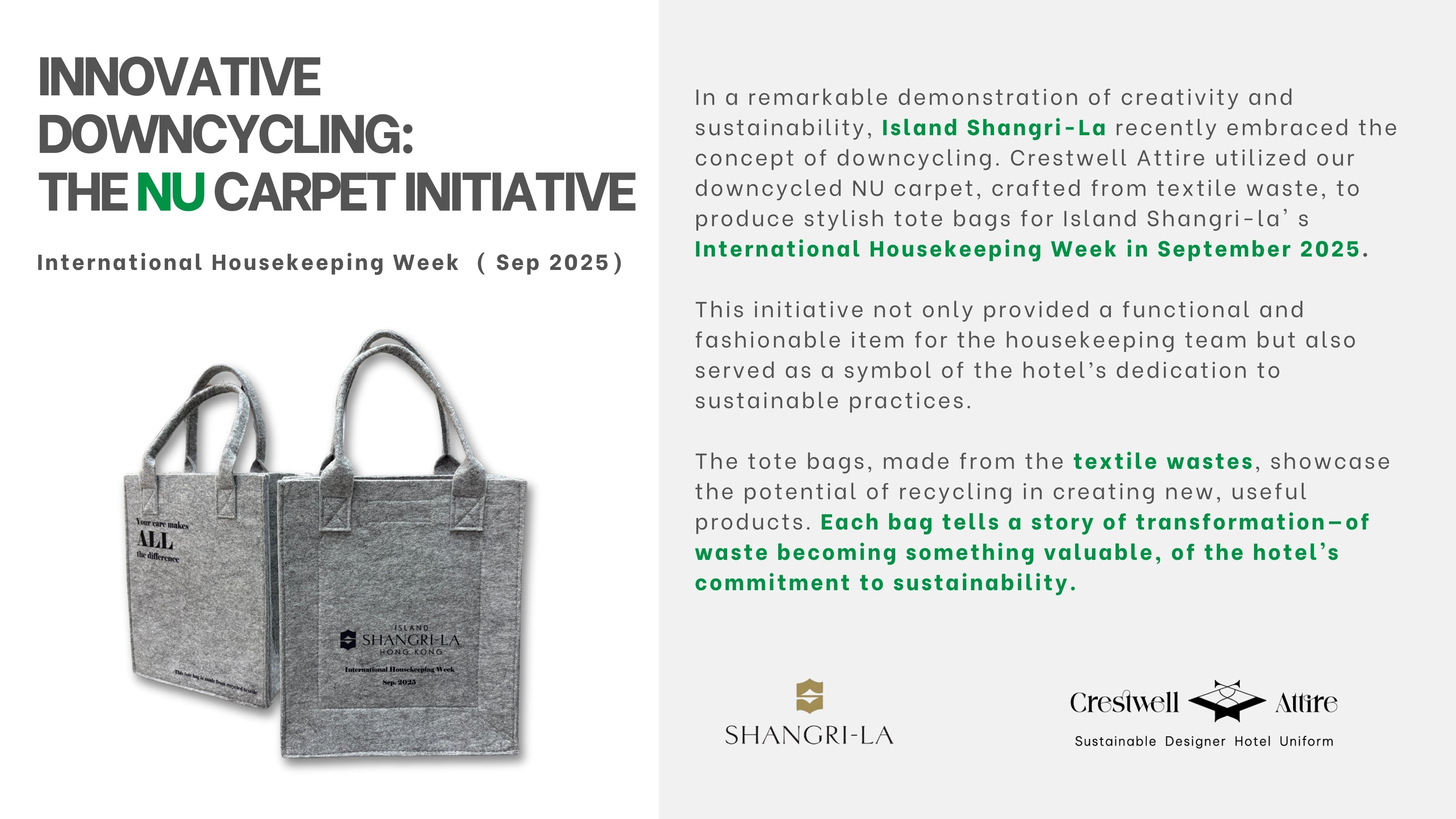 Crestwell Attire encourages our clients embarking on a transformative journey towards sustainability, beginning with a commitment to responsible disposal of old uniforms. Recognizing the significant environmental impact of textile waste in the hospitality industry, the hotel initiated a recycling program that not only reduces waste but also contributes to a circular economy.
