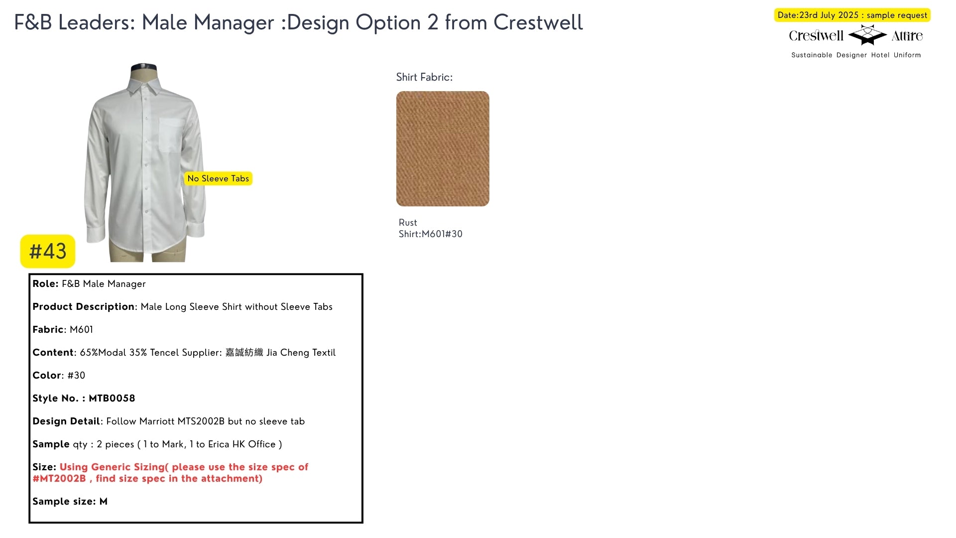Marriott F&B Leaders Male Manager Long Sleeve Shirt without Sleeve Tabs MTB0058