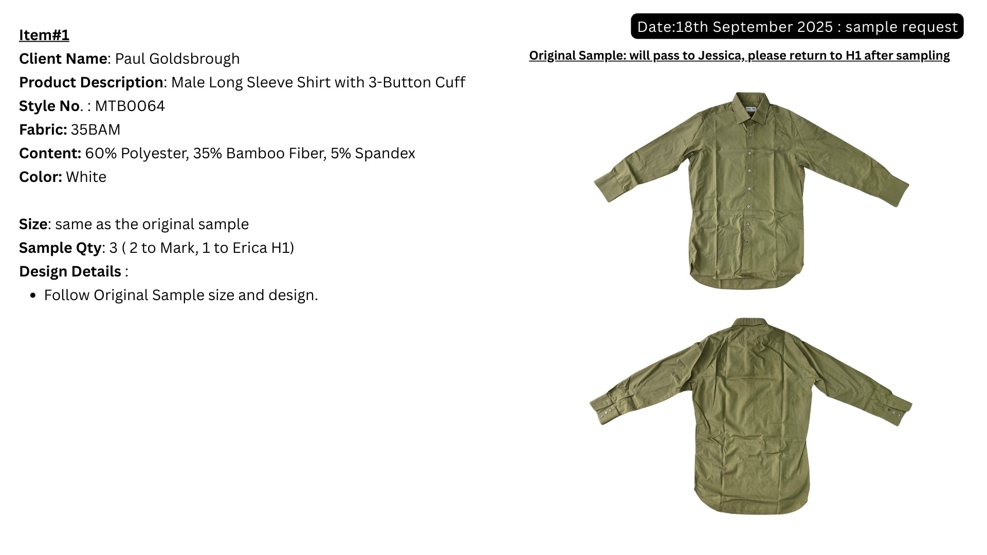 Paul Goldsbrough Male Long Sleeve Shirt with 3-Button Cuff Style MTB0064